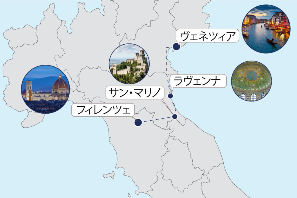 | ③2か所立ち寄り(ラヴェンナ又はサン・マリノ) | お一人様 € 880.00 |