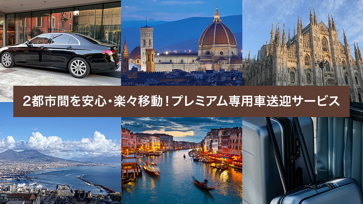 - ミラノ、ローマ、ベニス、ボローニャなどに到着のフライトが、欧州(シェンゲン)からのフライトではない(中東、アジア、日本、トルコなどの便の)場合には、入国審査と手荷物のピックアップに時間がかかるため、フライト着の時間でははなく予め配車時間を調整しておりますのでご確認下さい。